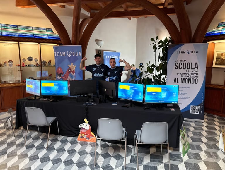 Montecatini Terme (Settembre 2025): L’ultima tappa, in cui per la prima volta, Pokémon competitivo ha condiviso la scena con il mondo E-Sport di PG Esports, nell’ambito delle finali nazionali del circuito Tormenta di League of Legends. Un simbolo di collaborazione tra diverse realtà del gaming competitivo, culminato con la proiezione sul maxi schermo del Regionale di Francoforte in diretta streaming con il Team Aqua.